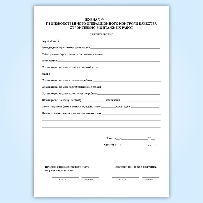 Журнал производственного операционного контроля качества строительно-монтажных работ в Тюмени купить