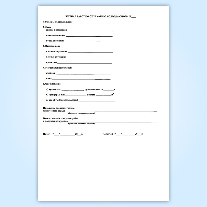 Журнал работ по опусканию колодца опоры в Тюмени купить