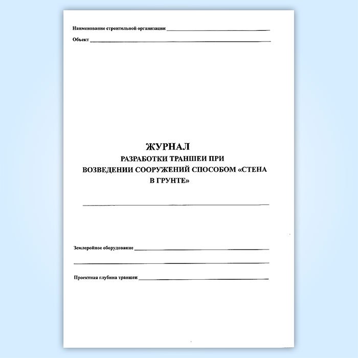 Журнал разработки траншеи при возведении сооружений способом «стена в грунте» в Тюмени купить
