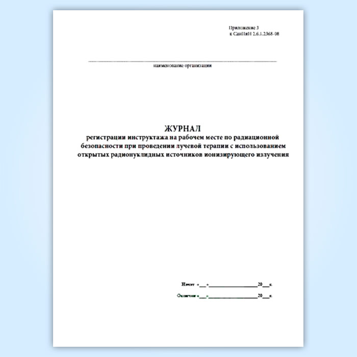 Журнал регистрации инструктажа на рабочем месте по радиационной безопасности при проведении лучевой терапии с использованием открытых радионуклиидных источников ионизирующего излучения в Тюмени купить