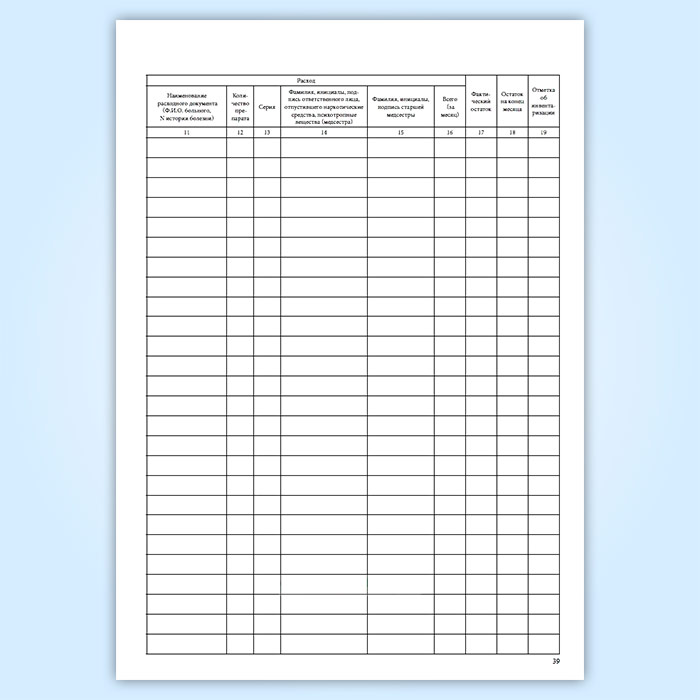 Журнал регистрации операций, связанных с оборотом наркотических средств и психотропных веществ дежурной (процедурной) медицинской сестры в стационарном отделении медицинской организации в Тюмени купить