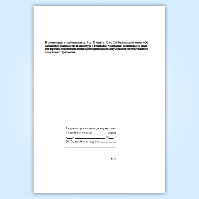 Журнал регистрации соглашений об оказании юридической помощи, заключаемых адвокатами с гражданами и юридическими лицами в Тюмени купить