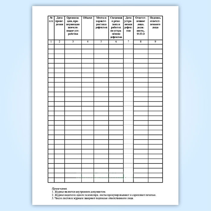 Журнал результатов ревизий устройств молниезащиты, проверочных испытаний заземляющих устройств (форма Б.30) в Тюмени купить