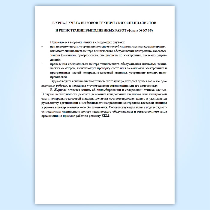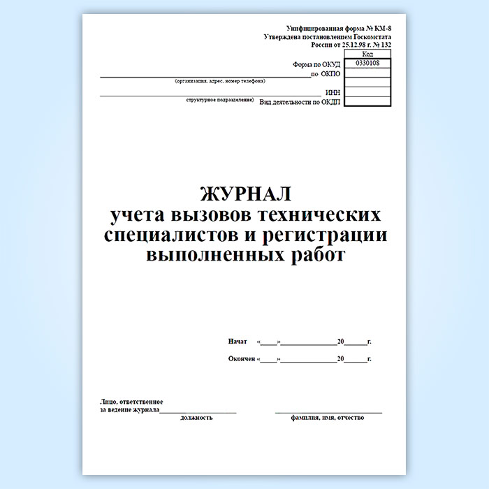 Журнал учета вызовов технических специалистов и регистрации выполненных работ (форма КМ-8) в Тюмени купить