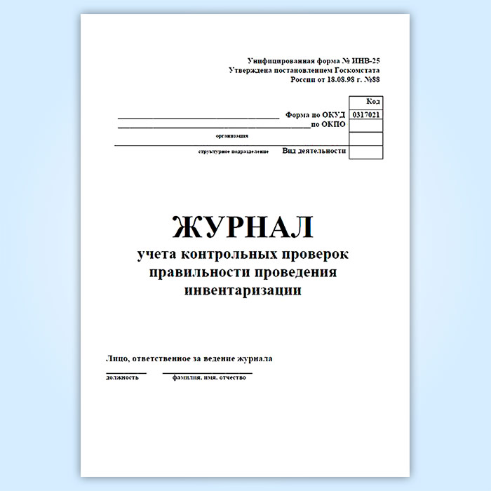 Журнал учета контрольных проверок правильности проведения инвентаризаций (форма ИНВ-25) в Тюмени купить