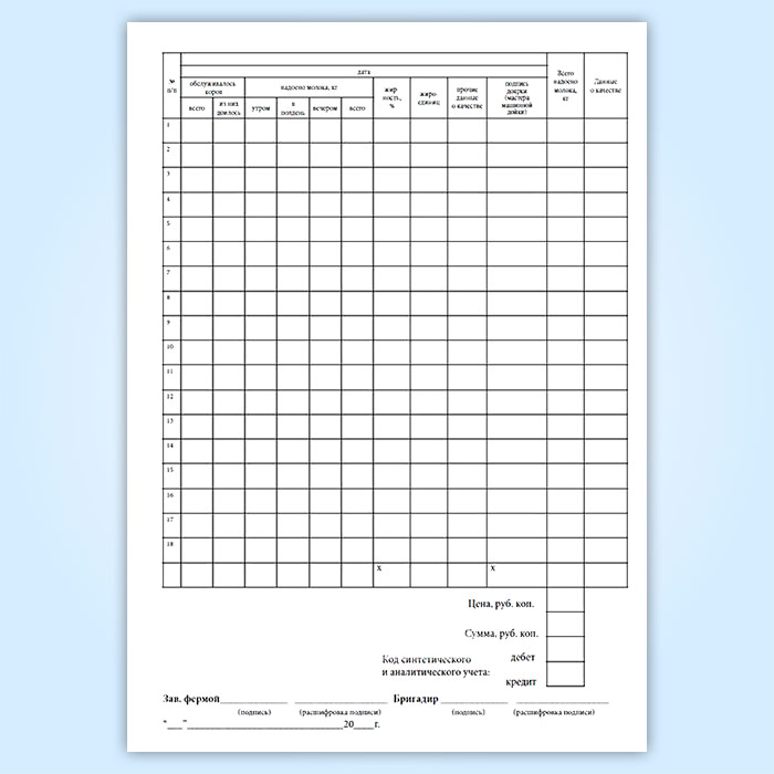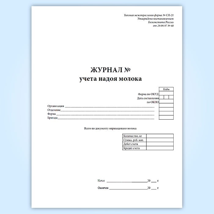 Журнал учета надоя молока (форма № СП-21) в Тюмени купить