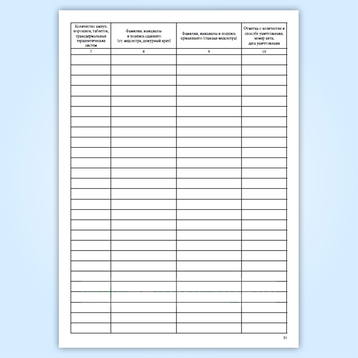Журнал учета неиспользованных рецептурных бланков на наркотическое средство или психотропное вещество и остатков неиспользованных наркотических средств и психотропных веществ, сданных доверенными лицами умерших больных, у главной медицинской сестры амбулаторного отделения медицинской организации в Тюмени купить