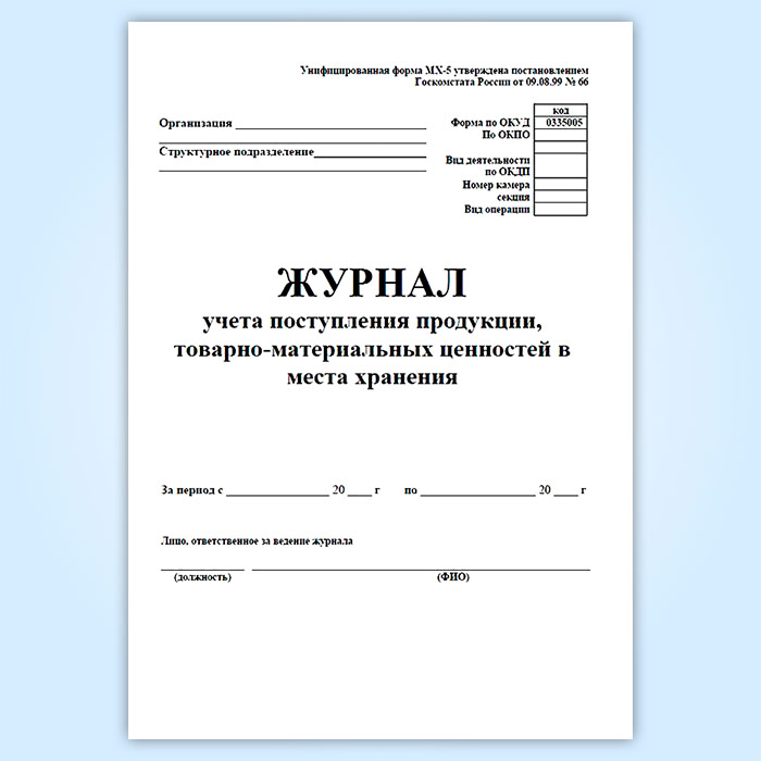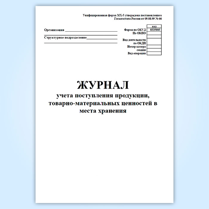 Журнал учета поступления продукции, товарно-материальных ценностей в места хранения (форма МХ-5) в Тюмени купить