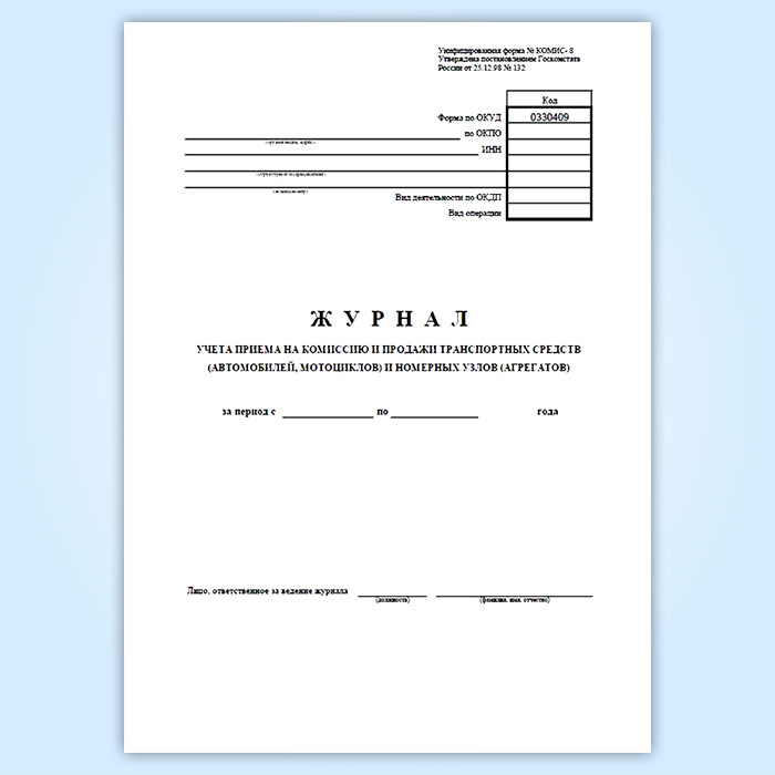 Журнал учета приема на комиссию и продажи транспортных средств (автомобилей, мотоциклов) и номерных узлов (агрегатов) (форма № КОМИС-8) в Тюмени купить