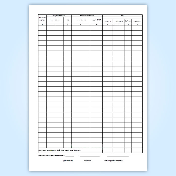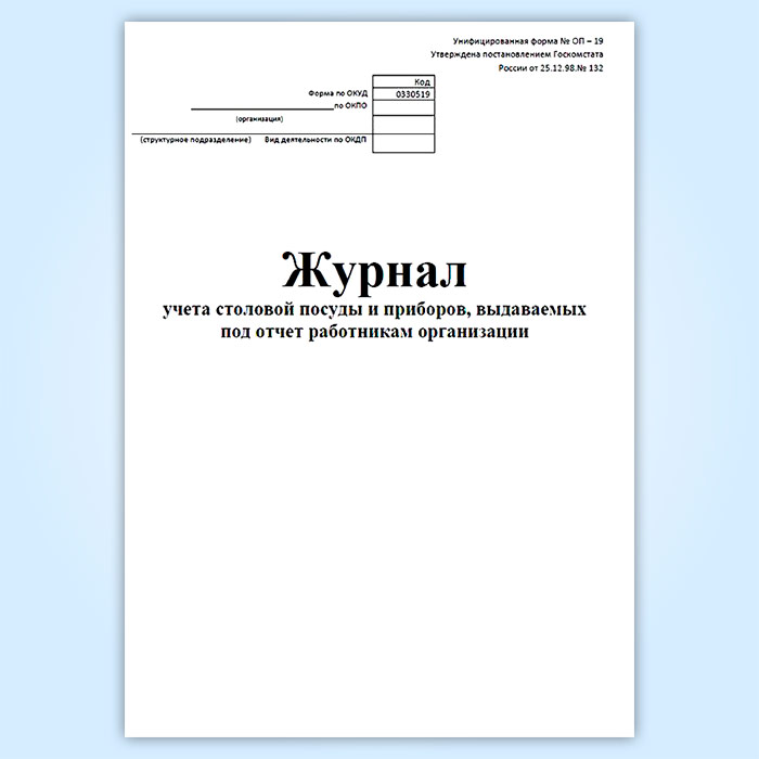 Журнал учета столовой посуды и приборов, выдаваемых под отчет работникам организации (форма № ОП-19) в Тюмени купить
