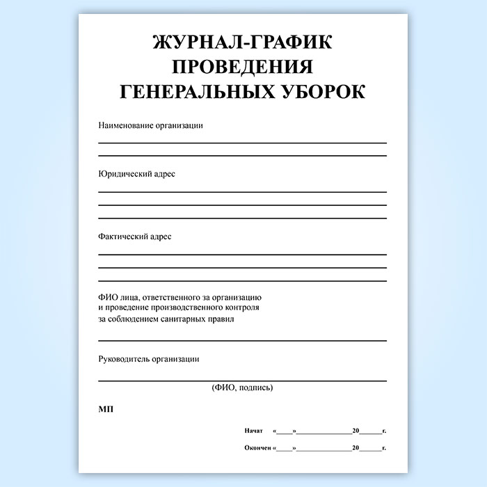 Журнал-график проведения генеральных уборок в Тюмени купить