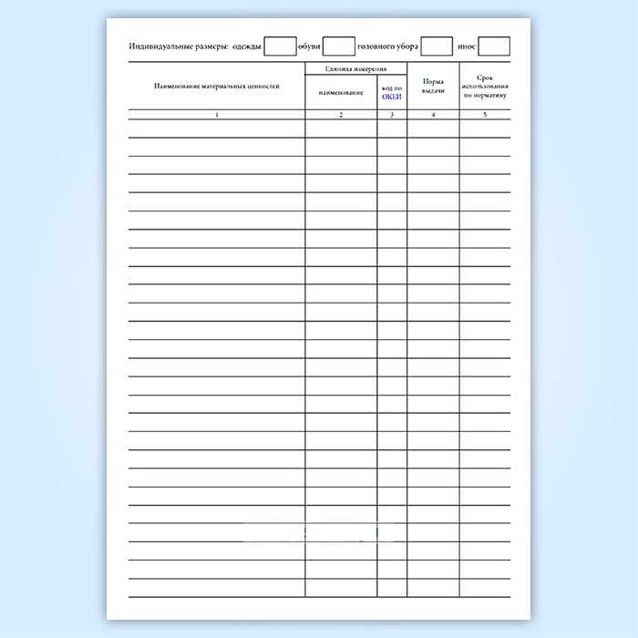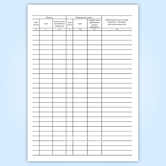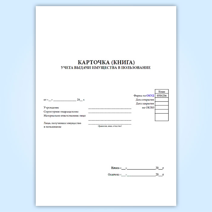 Карточка (книга) учета выдачи имущества в пользование (форма по ОКУД 0504206) в Тюмени купить