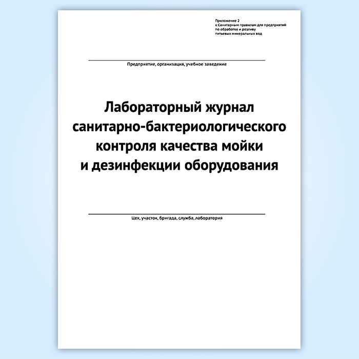 Лабораторный журнал санитарно-бактериологического контроля качества мойки и дезинфекции оборудования (форма 2) в Тюмени купить
