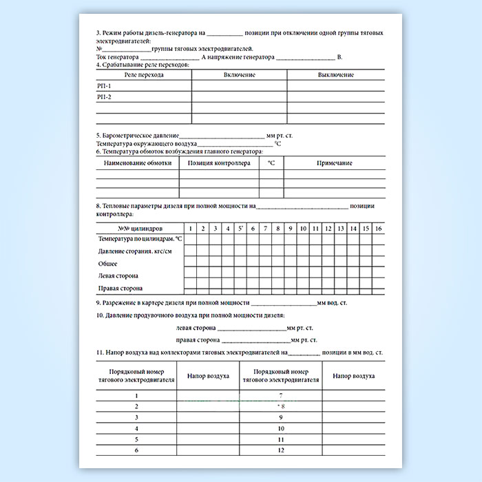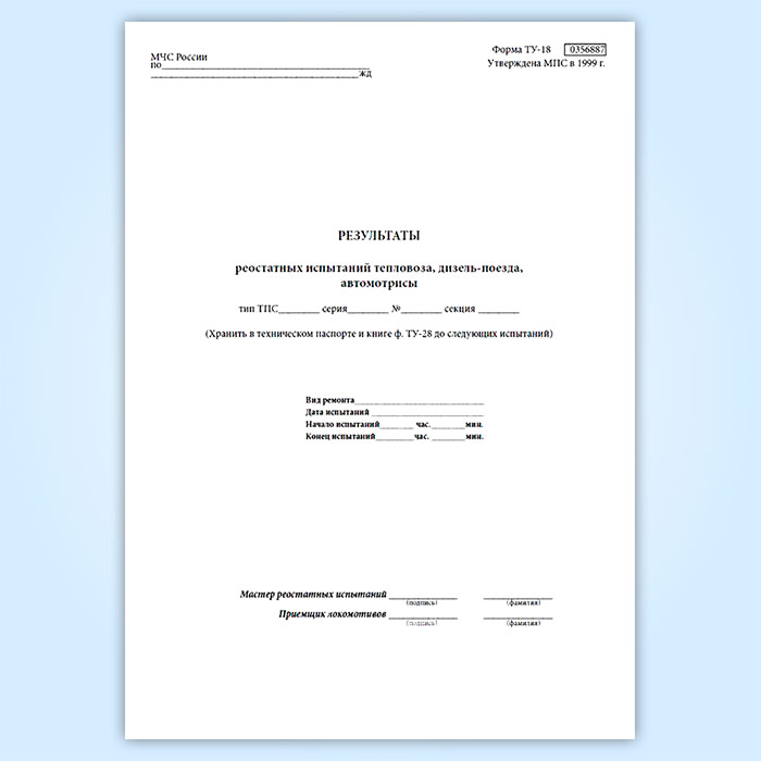 Результаты реостатных испытаний тепловоза, дизель-поезда, автомотрисы (форма ТУ-148) в Тюмени купить