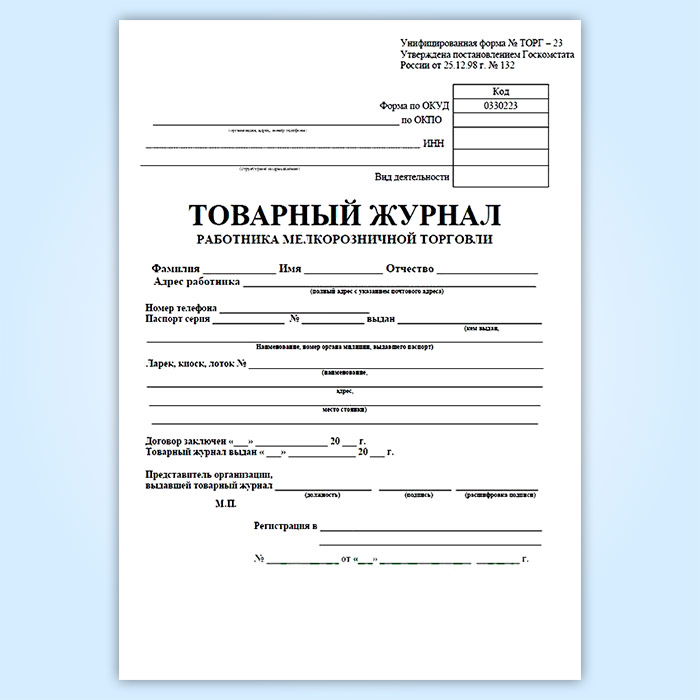 Товарный журнал работника мелкорозничной торговли (форма № ТОРГ-23) в Тюмени купить