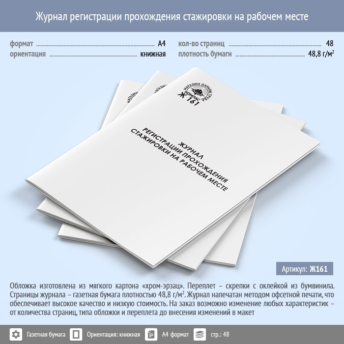 Журнал регистрации прохождения стажировки на рабочем месте (48 стр., Ж161) в Тюмени купить