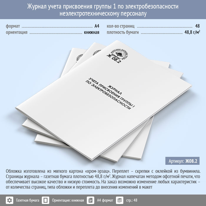 Журнал учета присвоения группы 1 по электробезопасности неэлектротехническому персоналу (48 стр., Ж08.2) в Тюмени купить