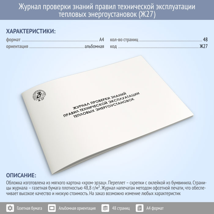Журнал проверки знаний правил технической эксплуатации тепловых энергоустановок (48 стр., Ж27) в Тюмени купить