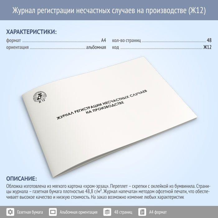 Журнал регистрации несчастных случаев на производстве (48 стр., Ж12) в Тюмени купить