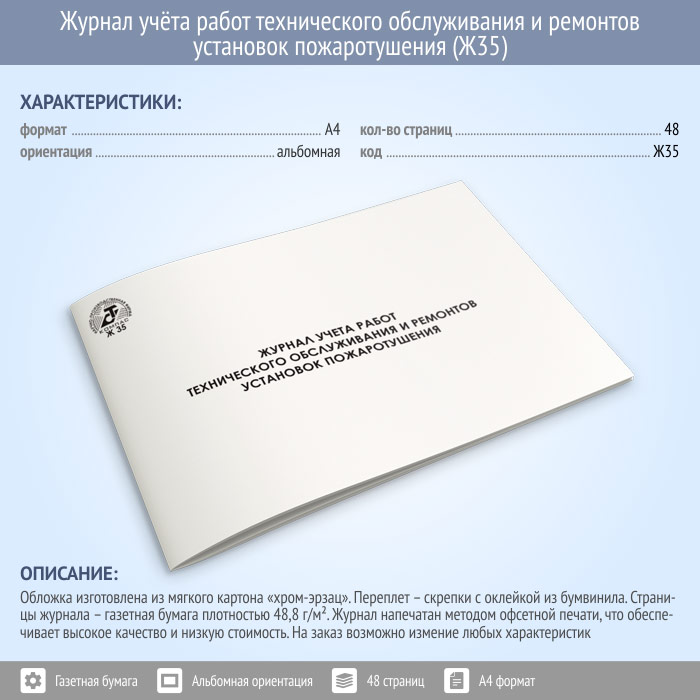 Журнал учета работ технического обслуживания и ремонтов установок пожаротушения (48 стр., Ж35) в Тюмени купить
