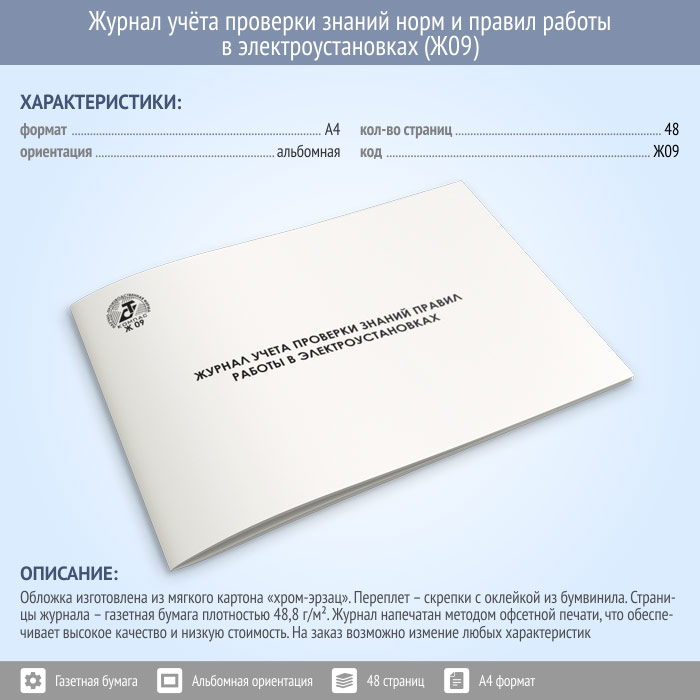 Журнал учета проверки знаний норм и правил работы в электроустановках (48 стр., Ж09) в Тюмени купить