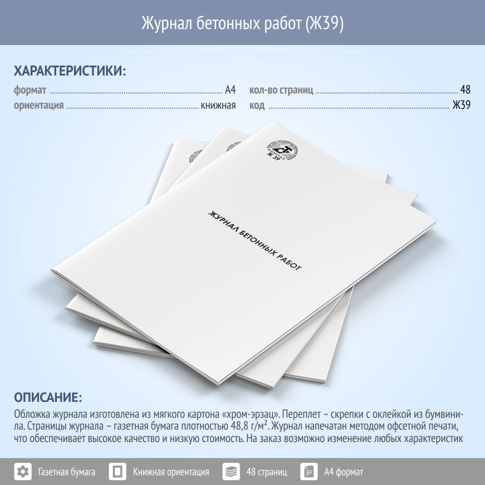 Журнал бетонных работ (48 стр., Ж39) в Тюмени купить