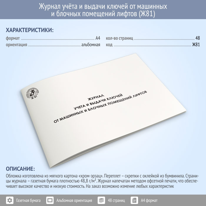 Журнал учета и выдачи ключей от машинных и блочных помещений лифтов (48 стр., Ж81) в Тюмени купить
