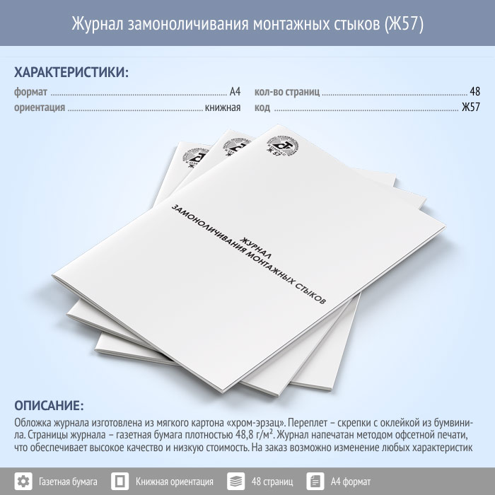 Журнал замоноличивания монтажных стыков (48 стр., Ж57) в Тюмени купить