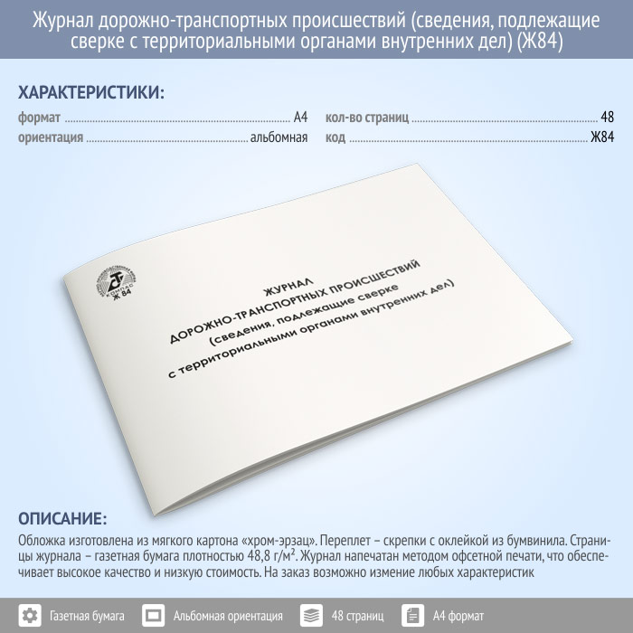 Журнал дорожно-транспортных происшествий (сведения, подлежащие сверке с территориальными органами внутренних дел) (48 стр., Ж84) в Тюмени купить