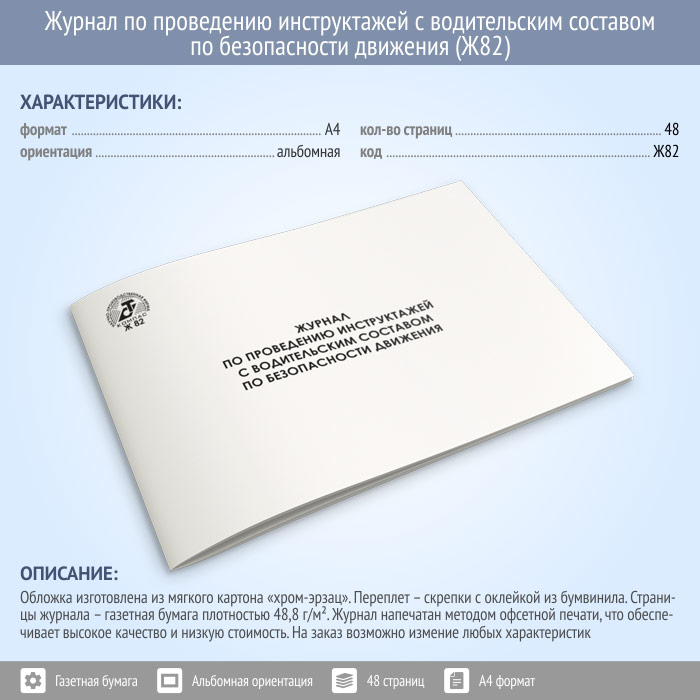 Журнал по проведению инструктажей с водительским составом по безопасности движения (48 стр., Ж82) в Тюмени купить