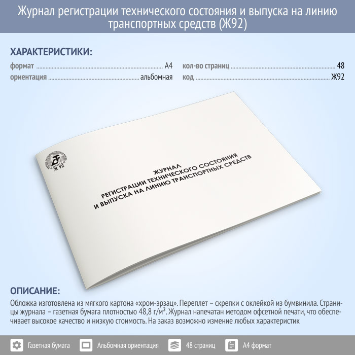 Журнал регистрации технического состояния и выпуска на линию транспортных средств (48 стр., Ж92) в Тюмени купить