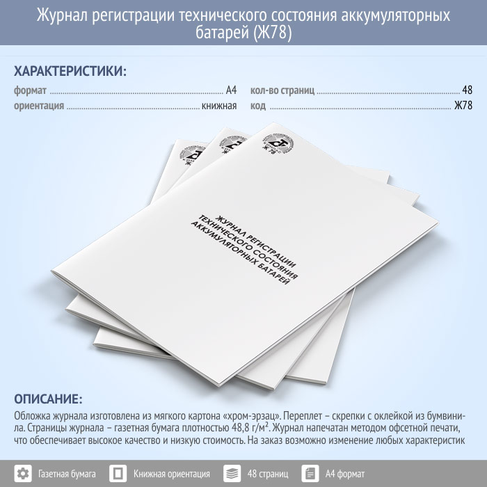 Журнал регистрации технического состояния аккумуляторных батарей (48 стр., Ж78) в Тюмени купить