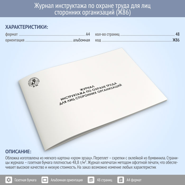 Журнал инструктажа по охране труда для лиц сторонних организаций (48 стр., Ж86) в Тюмени купить