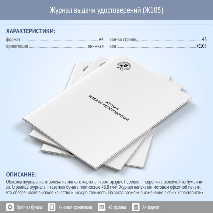 Журнал выдачи удостоверений (48 стр., Ж105) в Тюмени купить
