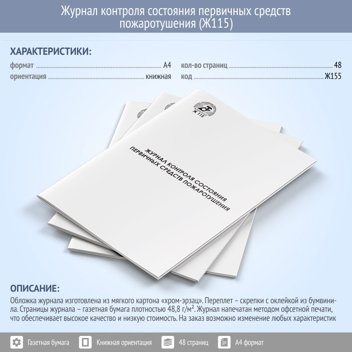 Журнал контроля состояния первичных средств пожаротушения (48 стр., Ж115) в Тюмени купить