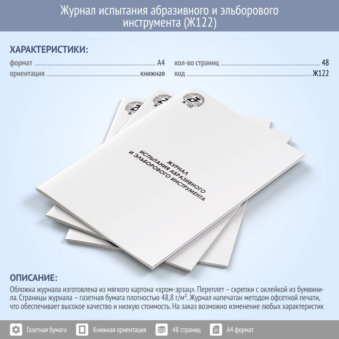 Журнал испытания абразивного и эльборового инструмента (48 стр., Ж122) в Тюмени купить