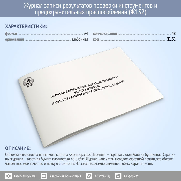 Журнал записи результатов проверки инструментов и предохранительных приспособлений (48 стр., Ж132) в Тюмени купить